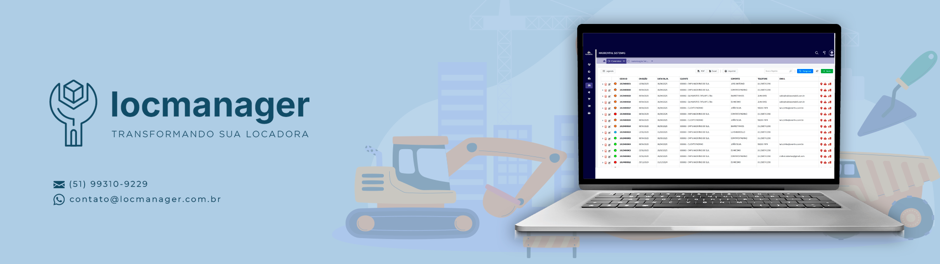 o setor de locação de equipamentos, agilidade, precisão e segurança são fundamentais para garantir transações eficientes e reduzir riscos jurídicos. Com a geração automática de contratos personalizados integrada a um software de locação, sua empresa pode simplificar processos burocráticos, assegurar conformidade legal e oferecer uma experiência profissional aos clientes. Como Funciona? Modelos Pré-Definidos e Personalizáveis O software oferece templates de contratos adaptáveis às necessidades do seu negócio, com cláusulas padrão para locação de equipamentos (prazos, valores, multas por atraso, responsabilidades, seguro). Você pode personalizar termos específicos por tipo de equipamento, cliente ou projeto, garantindo flexibilidade sem perder a padronização. Preenchimento Automático de Dados Ao cadastrar uma nova locação, o sistema preenche automaticamente informações como: Dados do cliente (nome, CPF/CNPJ, contato). Detalhes do equipamento (modelo, número de série, valor diário). Período de locação, custos adicionais e condições de devolução. Cláusulas Dinâmicas Regras configuráveis permitem incluir ou ajustar cláusulas com base em critérios como: Tipo de equipamento (ex.: cláusulas específicas para máquinas pesadas). Duração da locação (descontos para períodos longos, multas progressivas). Requisitos de segurança ou certificações obrigatórias. Assinatura Digital Integrada Após a revisão, o contrato é enviado ao cliente por e-mail ou via plataforma. A assinatura digital é realizada em poucos cliques, com validade jurídica garantida por: Certificação ICP-Brasil (ou padrões internacionais, como eIDAS na UE). Registro de data/hora e IP para auditoria. Integração com serviços como DocuSign, Adobe Sign ou soluções próprias. Vantagens para o Seu Negócio Redução de Erros: Elimina inconsistências em contratos manuais. Economia de Tempo: Processo que antes levava horas é finalizado em minutos. Conformidade Legal: Atualização automática conforme mudanças na legislação. Segurança: Armazenamento em nuvem com criptografia e backup. Profissionalismo: Contratos claros e digitalizados reforçam a credibilidade da empresa. Recursos Adicionais Aprovações em Etapas: Envie o contrato para revisão interna antes do cliente. Lembretes Automáticos: Notificações para vencimentos, renovação ou devolução. Integração com ERP/CRM: Sincronize dados financeiros e de clientes sem retrabalho. Relatórios e Auditoria: Acesse histórico de contratos, assinaturas e alterações.